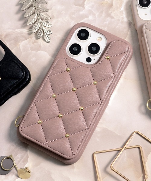 CECIL McBEE (セシルマクビー)のiPhoneケース[対応機種]・iPhone 15 専用・iPhone 15 Pro 専用カラー・ブラック・ベージュ(くすみベージュ)・モカ(ピンクモカ)・ネイビー【主な素材】PC / PUレザー/ マグネット(リング:鉄 / 芯材:紙、樹脂プレート)【特徴】・ふっくらしたキルティング・カード収納付き・大きなミラー付き・ストラップ用リング付き【ふっくらしたキルティング】キルティングはふっくらしたフォルム感で、触り心地の良い仕上がりとなっています。【ミラー付き】ちょっとした身だしなみチェックに使えるミラー付き。万一の飛散防止のためアクリル製のミラーを使用しており、割れにくく丈夫なミラーです。※アクリルミラーを使用しているため見え方に若干の歪みが発生します。お顔から10〜20cmの近さで使用頂くことでミラーの歪みが軽減致します。【カード収納】背面タイプのケースですが、カード収納することが可能です。内部に収納してフタをすることが出来るため、落下の心配が少ない仕様です。【注意事項】本製品はマグネットを使用しているため、クレジットカードなどの磁気カードを収納するのは避けて下さい。また磁気に影響を受けるものを近づけないようにして下さい。万一、収納物の落下、紛失、破損、内部データの破損等が起きても弊社では責任を負いません。商品についてのお問合せにつきましては、ZOZOカスタマサポートセンターへご連絡ください。