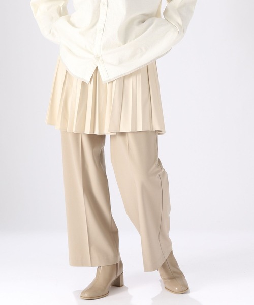 レイヤードにもぴったりのミニスカート ■素材特性 重たくなりすぎない、軽やかな生地感が特徴です。 ■デザイン トレンドの韓国ファッション好きにはたまらないスカートが登場です。 ミニスカートとしての着用も出来ますが、スカートやパンツとレイヤードして着こなすのもおすすめです。 フェイクレザーの艶感のある素材をコーディネートに取り入れると、全体が引き締まりグッとおしゃれに見える事まちがいなしです。 ■おすすめスタイリング ミニスカートで、クロップド丈のトップスを合わせるとトレンドの韓国風の取り入れられます。 ロングブーツを合わせてスタイルアップ効果も◎
