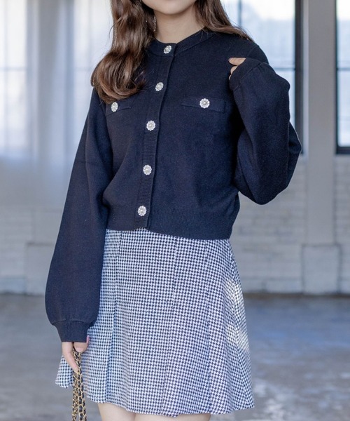 華やかな!ビジューボタンハイゲージニットカーディガン 【デザイン】 キラキラとしたビジューボタンが華やかさを演出します! 温かみのあるハイゲージニットカーディガンで、これからの季節にぴったりのアイテムです♪ また、インナーなどを合わせて着てもオススメです! 【素材感】 肌触りのいいレーヨンニット素材 伸縮性:あり/ 透け感: なし/ 裏地:なし 水洗いによる洗濯不可 / ドライクリーニング可 【コーディネート】 トップスとして着ていただいても、羽織りとしても大活躍します! きれいめなアイテムとの相性がいいです! 【※お取り扱い上のご注意】 1:モニター環境等により実際の商品と多少色味が異なって表示される場合がございます。予めご了承下さい。 2:屋外で撮影された商品は、天候により多少実際のカラーと異なる場合があります。商品のカラーはトルソー(マネキン)の商品画像をご参照ください。 3:濃い色の商品は、お洗濯や摩擦等による移染にご注意ください。 4:末永くご愛用頂く為に、アテンションタグ・洗濯ネームを必ずご確認の上、着用又はお取り扱い下さい。 5:生産時期により、色、サイズ、デザイン、素材の質感が多少が異なる場合がございます。あらかじめ御了承下さいませ。