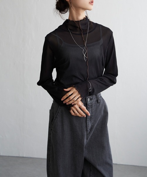 ニットやスウェット、ビッグシャツなどのインナーに合わせたいハイネックのシアートップス。首元や袖口のメローフリルが、チラ見せした時のポイントになってくれます♪★《お気に入り登録》でお得な情報がいっぱい★・「商品のお気に入り登録」で再入荷通知や、ラスト1点の通知、セール通知も受け取ることができます。・「ブランドのお気に入り登録」で新商品や再入荷など、お得な情報を受け取ることができます!※ご覧のモニター環境により、画像の色味と多少異なる場合がございます。※他のキャンペーンにより、期間中に価格が変動する場合があります。※セールは予告なく終了させていただく場合もあります。[クリーニング]手洗い可、ドライクリーニング可(F)、ウェットクリーニング(W)