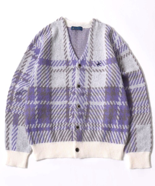 BEVERLY HILLS POLO CLUB モヘアライク ニットカーディガン ユニセックス/ワンポイント刺繍/チェック柄・無地