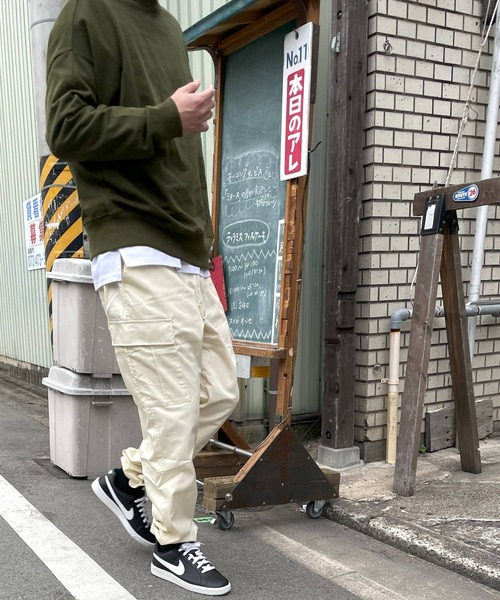 \裾絞りで好みのシルエットに/ そのままでストンと綺麗なストレートシルエット、 裾を絞って程よいバルーンシルエットのジョガースタイルも楽しめる2WAY使用 ■ ワイドもスキニーもいいけど、『コレがちょうどいい!』程良くゆったりシルエット 不滅の人気を誇るミリタリーカーゴデザインに注目度も高く 程良くゆったりとしたサイズ感で、着こなしに抜け感をもたらすトレンドライクなシルエットで仕立てた1着です。 様々なコーデとの相性のいいシルエット。 ■ 丈夫で耐久性に優れたコットンツイル 素材にはワークアイテムに多くに用いられるコットンツイル生地を使用。 丈夫で、洗濯を繰り返しても褪せた表情を楽しめる実用的な生地です。 ■ 快適なウエストデザイン ウエストは、バックウェストにシャーリング加工を施し、 お腹周りをストレスフリーにしたイージーパンツ仕様で リラックスした快適な履き心地を実現。 アメカジからストリートやサーフ系、ラフな韓国ファッションに キレイめスタイルにも合わせ易い。 ロングシーズンオフのカジュアルコーデに活躍してくれます。
