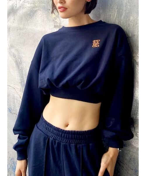 昨年人気だった、ショートトレーナーです。 裾部分にゴムが入っておりウエストで止まる仕様なので、 ボリューム感がありメリハリのあるスタイリングになります。 胸元のロゴは今季10周年のロゴマークです。