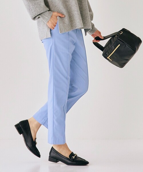 毎年大人気のハイパーストレッチ裏起毛パンツが今年も登場! 【デザイン】 驚きのストレッチ性で着心地◎のテーパードパンツ。 ハイパーストレッチの伸縮性が高い素材を使用しており、らくちんな着心地が特長です。 裏起毛加工が施されているので、冬にも暖かく着用いただけます。 スティックパンツほど細くせずに、程よくゆとりを持たせたテーパードシルエット。 フロントにピンタックを入れることで脚がまっすぐ見えしてすっきりと見えるのが嬉しいポイント。 素材のストレッチ性を活かして、従来型よりギャザー分量を減らして着用時の後ろ姿がすっきりと見えるよう改良致しました。 ※ポケット数:横×2 【素材】 非常に伸縮性が高いストレッチ素材に裏起毛加工を施して肌当たりを良くしました。 膝まわりやヒップ周りの運動にもしっかりついてくる、リラクシーな着用感です。 裏の暖かさに対して表面はすっきりときれいめな表情の為、初春まで活躍します。 ※裏地なし ※オフホワイト(003)はやや透け感があるため、インナーの着用をおすすめします。 【スタイリング】 ベーシックなテーパードパンツはきれいめにもカジュアルにも活躍するアイテム。 フロントのピンタックがきれいめな印象の為、ざっくりとしたニットを合わせてもカジュアルすぎず大人っぽく着用頂けます。 ★同素材、同デザインにて、低身長さん向けの‐3cm丈(768-67906)高身長さん向けの+5cm丈(768-67905)をご用意しています。 ★様々な体型の方に着用いただけるよう、00サイズが新登場しました。 モデル情報:身長166cm B80 W59 H86 着用サイズ:02(M) 店舗へのお問い合わせ商品番号:768-67028 ●製品寸法: 00(SS):W61~69cm H80cm 股下64cm 前股上26cm わたり幅26cm 裾幅16cm 01(S):W64~72cm H83cm 股下65cm 前股上27cm わたり幅27cm 裾幅16cm 02(M):W67~75cm H86cm 股下66cm 前股上27cm わたり幅28cm 裾幅17cm 03(L):W70~78cm H89cm 股下67cm 前股上27cm わたり幅30cm 裾幅18cm 04(LL):W73~81cm H92cm 股下68cm 前股上28cm わたり幅31cm 裾幅19cm 05(3L):W76~84cm H95cm 股下68cm 前股上28cm わたり幅32cm 裾幅19cm 備考: