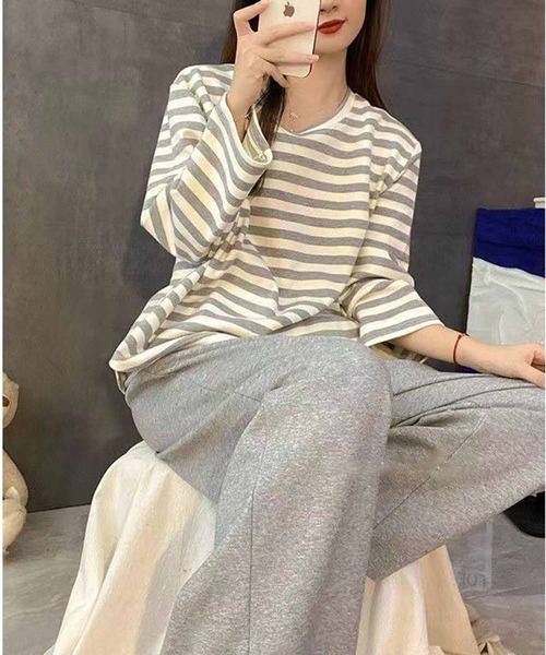 着心地楽ちん♪カップ付きセットアップルームウェア ボーダーのロングTシャツにウエストゴムのパンツがセットになったルームウェア。 ロングTシャツにはカップがついているので一枚で着られて楽ちん♪お家でのリラックスタイムにぴったりなアイテムです。 伸縮性のある軽い生地なので動きやすく、ストレスフリーな着心地。 ゆったりとしたシルエットでお家の中でも可愛く♡ワンマイルウェアとしても◎ ・生地の厚み:普通・透け感:ややあり ・伸縮性:あり ・ポケット:なし ・裏地:なし ・お洗濯:ホームクリーニング可能 ※品質を長持ちさせるために、手洗い、ネット使用、洗濯機の手洗いモードがおススメです。 ※モニター・環境により実際の商品と多少色味が異なって表示される場合がございます。 予めご了承ください。 ※画像の商品はサンプルとなります。 実際の商品と色味・仕様・加工・サイズ・素材などが若干異なる場合がございます。 予めご了承ください。 【お買いものをお楽しみいただく為に】 ●NANEAの商品をお気に入り登録 ♡をクリックしていただくと、完売カラーの再入荷通知や、ラスト1点の通知、 セールのお知らせが届きます。 ●NANEAをお気に入りブランドに登録 新商品や再入荷など、いち早くお得な情報を受け取ることができます。 ♡NANEAについて♡ 『好きなファッションを身に纏う楽しさを』 今着たい”トレンド&ベーシック”なデイリーユースアイテムを揃えるブランドです