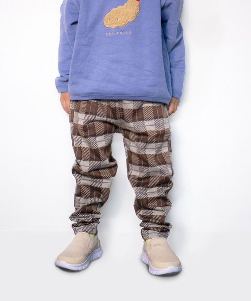 ストレッチ性の高いカットソー素材のチェックパンツです。ヒップにゆとりのあるテーパードシルエットなので履き心地バツグンです。サイドポケットとヒップポケットがついています。