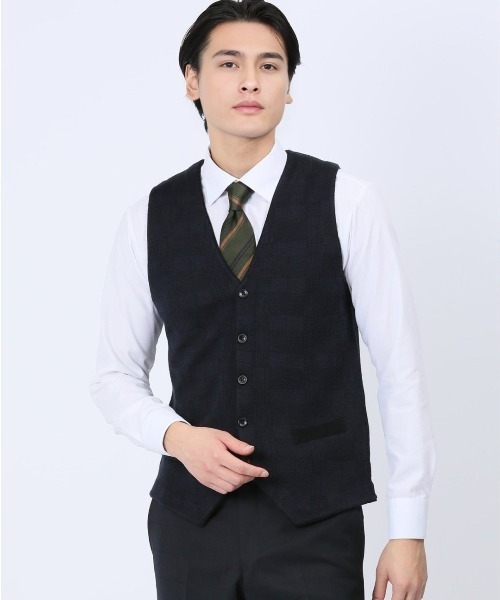 ■素材特徴 ウール50%・アクリル50%のニット素材で、気温が高めの初秋からでも快適に着用していただけます。ウールにアクリルをブレンドすることで、柔らかさを保ちながら毛羽立ちを抑えてピリング(毛玉)を防止します。さらに、ご自宅で簡単にお手入れが出来るウォッシャブル機能も備えています。 ■機能 【ウォッシャブル】ご家庭で洗濯可能。いつも清潔に着ていただけます。 ■デザイン スマートな印象に仕上げたVネックのシングルジレです。前身頃にあしらったグレンチェック柄の編地がポイント。(後身頃は無地の天竺編みです。)脱ぎ着がしやすい前開き仕様で、気温に合わせた温度調節もスムーズ。ワンランク上の着こなしを楽しみつつ、さらに防寒着としても活躍してくれます。両サイドのタブでサイズの微調整も可能です。 ■シルエット ベーシックなシルエットです。ボディラインに心地良くフィットして、スタイリッシュに着用していただけます。 ■コーディネート ジャケット・ワイシャツ・ネクタイで作られるVゾーンにベストを加えることで、立体感と奥行きが表現できます。カジュアルなジャケパンスタイルから、かっちりとしたスーツスタイルまでオンオフ兼用で着回し可能です。 フィット感:標準 シーズン:秋冬 展開カラー:紺(ネイビー)・グレー・茶(ブラウン) *アテンションタグ・洗濯ネームを御確認の上、着用又は取り扱い下さい。 *光の当たる場所や高温多湿になる場所での保管は避けて下さい。 *使用の有無に関わらず、経年劣化は進行いたしますのでご了承下さい。 *生地の裁断・縫製方法により、写真と同様の柄が出ない場合がございます。 *閲覧デバイス・環境により質感・色味に誤差が生じる場合がございます。 * ZOZOTOWN お買い物ガイド 商品のお気に入り登録 ♡をクリックしましょう!完売カラーの再入荷通知や、ラスト1点の通知、セールの通知をお知らせします。 ブランドのお気に入り登録 新商品や再入荷など、いち早くお得な情報を受け取ることができます。 最短で翌日お届け 商品をカートに入れた後、注文内容の確認ページで「即日配送」を選択していただければ、最短でご注文した翌日にお届け致します。 (ZOZOTOWNお買いものガイドをご参照ください)