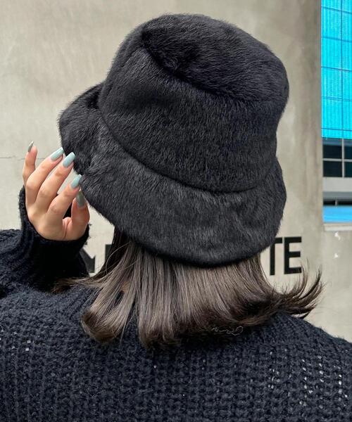 2023 AW 秋冬アイテム ふわふわのエコファーハットがコーディネイトに季節感をプラス。なめらかな肌触りと深めのかぶりが使いやすさのポイント。ボリュームのあるシルエットがトップに視線を集め小顔効果も狙えます。内側のテープでサイズ調整が可能。どんなスタイルにも合わせやすいので普段使いに重宝。ベーシックで合わせやすいカラーが揃っています。