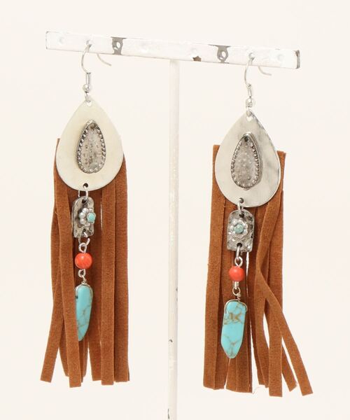 存在感たっぷりなロングフリンジピアス。 メタルのドロッププレートや様々なパーツを組み合わせた個性的なデザイン。 あえてアンティーク感のある風合いに仕上げています。 コーデにプラスするだけでボヘミアンな雰囲気に。 ※こちらの商品は1点1点職人による手作りとなります。その為、形や色合いなど若干異なる場合がございます。あらかじめご了承ください。 Amina Collection Co.,LTD.