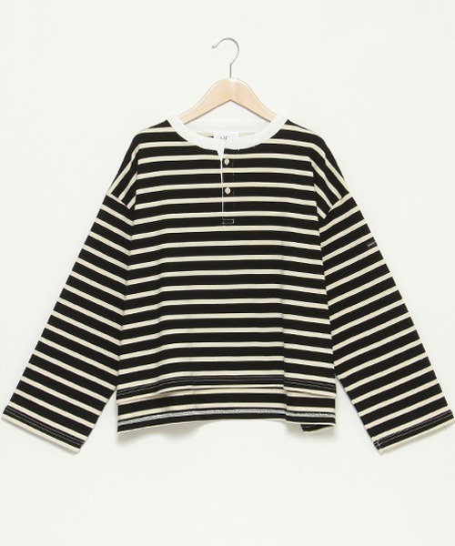 カジュアルさとスポーティ感を両立したヘンリーネック仕様のボーダーTシャツです。衿ぐりをさわやかな色味にして、清潔感をプラスしました。細ピッチのパターンがさらに上品な雰囲気を後押し、前後差のある着丈にしており、アウトスタイルでもサマになります。【透け感】透けない【生地の厚さ】普通【伸縮性】あり【裏地】なし【ポケット】なし