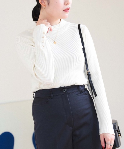 優秀リブニット ■デザイン 幅広いシーンで活躍するベーシックなハイネックプルオーバー。袖口のゴールドボタンがクラシカルで上品な雰囲気をプラスしてくれます。色違いで揃えたくなる1枚。 ■コーディネート 定番のデニムで大人カジュアルスタイルにはもちろん、きれいめボトムスと合わせて通勤スタイルにもおすすめです。サロペットやキャミワンピースのインナーとしても大活躍◎。 ■サイズ コンパクトなサイズ感で女性らしいシルエット。 ■素材 滑らかで細いリブ編み。肌触りも良く、秋から冬のインナー使いにも使いやすい素材感です。 ■ケア方法 洗濯可(手洗い) ●同素材のカーディガンもございます 品番:43-15-0106-213 【OFF WHITE・BLACK・MUSTARD】BEAMS STAFF:H162 Size:ONE SIZE 【CHARCOAL GREY・BROWN】BEAMS STAFF:H165 Size:ONE SIZE ********************** 生地の厚さ:普通 透け感:カラーによって異なる 伸縮性:あり 光沢感:なし 裏地:なし ********************** ※光の当たり具合やパソコンなどの閲覧環境によって実際の色味と異なって見える場合がございます。予めご了承ください。 ※商品の色味は商品単体で撮影した画像をご参照ください。