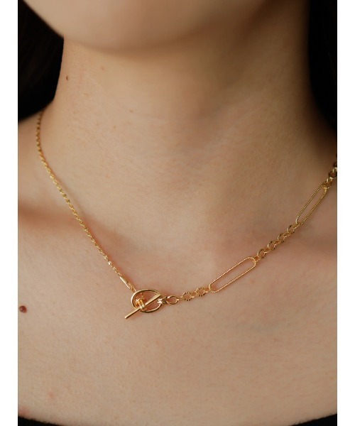 シンプルだけどきらきらしたチェーンでデコラティブに仕上げたネックレス。ワンポイントに映えるマンテルデザインもポイント◎ランダムチェーンでシンプル過ぎず、コーディネートにさりげないアクセントをプラスします。ゴールドとシルバーの2色展開!