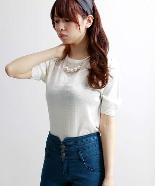 切替デザインを採用したニットソー。ショート丈かつ、程よくゆとりのあるシルエットが女性らしい仕上がり。透け感あるレース生地を使用したデザインが、フェミニンな印象を着こなしにプラスします。ニットキャップやスニーカーと合わせるような、MIX感ある着こなしも今季オススメです。