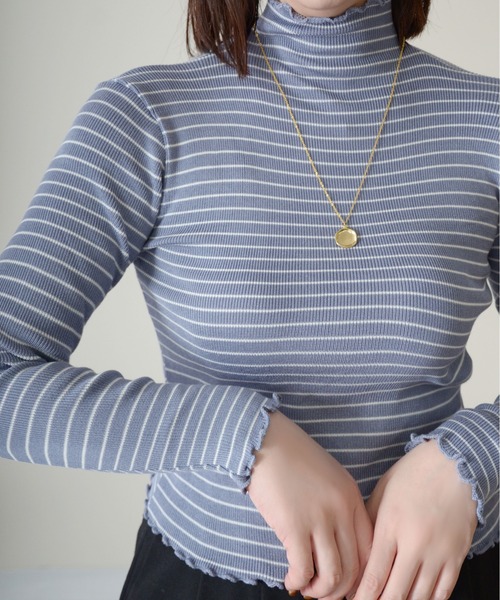 カラバリで揃えたくなるベーシックニット襟ぐり、袖口のフリルが、アクセントに!着こなしのインナーとしても大活躍。もっちりとした肌当たり柔らかな素材で、着心地リラクシーなのも嬉しいポイント。フィット感のあるシルエットで、1枚でももちろん、ジャケットなどのインナーとしても使えるアイテム。普段使いはもちろん、オフィスシーンにも着まわせるベーシックなニットトップスです。素材・着用感伸縮性に優れた滑らかな肌当たりの細リブニット▼お取り扱いについて※シルエットをくずさないために、保管の際はハンガーを使用せず、たたみ保管にして下さい。※この商品は、素材や縫製の特性上、一点一点多少大きさが異なります。※素材の性質上、染料のにおいが多少感じられる場合がございます数日のご使用や陰干しなどで気になる匂いはほとんど感じられなくなりますので、お試しくださいませ。《お気に入り登録》・「商品のお気に入り登録」で再入荷通知や、ラストの通知、セール通知も受け取ることが出来ます。・「ブランドのお気に入り登録」で新商品や再入荷など、お得な情報を受け取ることが出来ます。※生産時期により色・素材・サイズ感など多少異なる場合がございます。※掲載画像の商品の色味は、屋外や屋内の光の照射や角度、ご覧になる端末等の環境により実物と色味が異なる場合がございます。また表示のサイズ感と、実物は若干異なる場合もございますので、予めご了承ください。※他のキャンペーンにより、期間中に価格が変動する場合があります。※セールは予告なく終了させていただく場合もあります。