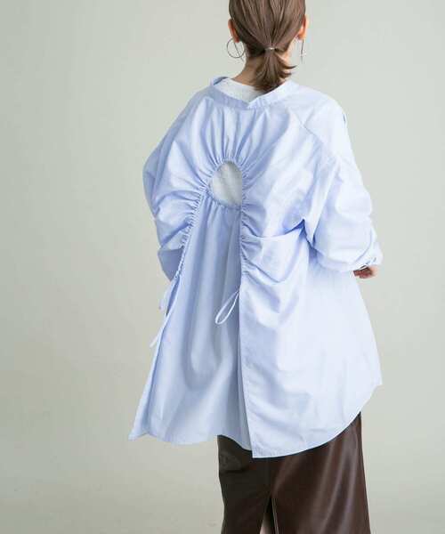 【バックスタイルで差をつけたKBF的デザインシャツ】 背中のデザインが特徴的なBIGシャツが登場。ドロストデザインで背中がチラッと見えるようになっています。内側のボタンを留めると背中が隠れるので、その時々によって着方を変えられて◎雰囲気の異なるカラーリングにも注目です。 COORDINATE キャミソールを合わせた肌見せスタイルはもちろん、シアーカットソーや表面感のあるインナーとのレイヤードもおすすめ。寒くなったらハイネックニットなどを合わせても◎ 【2023 Autumn/Winter】 ※商品画像は、光の当たり具合やパソコンなどの閲覧環境により、実際の色味と異なって見える場合がございます。予めご了承ください。 ※商品の色味の目安は、商品単体の画像をご参照ください。 ▼お気に入り登録のおすすめ▼ お気に入り登録商品は、マイページにて現在の価格情報や在庫状況の確認が可能です。 お買い物リストの管理に是非ご利用下さい。 素材感 透け感 : ややあり(D.NAVY, OFF) 伸縮性 : なし 裏地 : なし 光沢 : なし ポケット : なし
