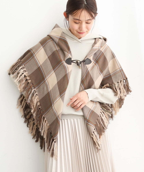 ボリュームのあるフリンジがオシャレなチェック柄ポンチョ。ストールをかけているように見えますが、羽織った時に綺麗に収まるようにネックにギャザーが入っており、トグル釦で留めることができる優れもの。起毛感のあるチェックがシンプルなコーディネートにも1枚羽織るだけでシーズンムードがたっぷりに仕上げてくれる1枚。 ※自然光・照明の関係、パソコン・スマートフォンなどの環境により、実際と色味が違って見える場合がございます。予めご了承ください。商品の色味は、詳細画像をご参照ください。 ※サンプルでの撮影となるため、実際にお届けする商品と仕様やサイズが異なる場合がございます。 ▼カラー番号表記 ミント(30)、ベージュ(82)、ライトグレー(91)