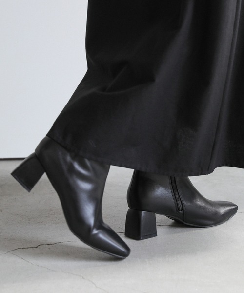 -point- & -styling- いつものコーディネートに取り入れやすい定番ショートブーツ。 スクエアトゥ×台形型のヒールがアクセントになり、 スタイリッシュな足元を演出してくれます。 サイドファスナーで着脱もしやすく、 ソール部分も柔らかい足当たりで履き心地抜群。 シンプルなデザインなので幅広いスタイリングにマッチし デイリーに活躍します。 ベーシックシンプルショート丈ブーツ ---------------------------- 素材 (甲材)合成皮革 (底材)合成底 ---------------------------- ※モニター・環境等により実際の商品と多少色味が異なって表示される場合がございます。 予めご了承をお願いいたします。 ======================= ■染料による特有の匂いが抜けきれず、匂いがする場合がございますが不良品にはあたりません。 上記注意点での返品、交換はお断りします。ご了承の上お買い求めくださいませ。 ■本製品は生産過程におきまして色味、サイズ感等若干の誤差が出る場合がございます。予めご了承くださいませ。 ======================= 【お買いものをお楽しみいただく為に!】 ▼商品のお気に入り登録 完売カラーの再入荷通知や、ラスト1点の通知、セールの通知も受け取ることができます。 ▼ブランドのお気に入り登録 新商品や再入荷など、いち早くブランドのお得な情報を受け取ることができます!