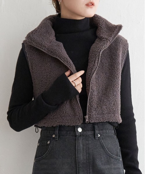 アウトドアライクなボア素材のベストがショート丈で登場!ショート丈ならではのアレンジ力で、幅広いアイテムにレイヤード可能です。【Detail】アームホールのパイピングや裾のドローコードなど、アウトドアなテイストを盛り込んだデザイン。スタンドネックで首元もあたたかいです。【Color】ホワイト・グレー・ブラックの3カラー展開。【Fabric/Texture】あたたかなボア素材。【Coordinate】フィット感のあるリブニットから、カジュアルなロンT、カッチリとしたきれいめシャツまで、どんなトップスにもマッチ!ショート丈のため、ボリュームのあるチュニックやワンピースなどに合わせてもバランスが取りやすいです。[クリーニング]手洗い可、ドライクリーニング可(F)、ウェットクリーニング(W)[洗濯方法]洗濯の際はネットを使用してください★《お気に入り登録》でお得な情報がいっぱい★・「商品のお気に入り登録」で再入荷通知や、ラスト1点の通知、セール通知も受け取ることができます。・「ブランドのお気に入り登録」で新商品や再入荷など、お得な情報を受け取ることができます!※商品の色味は、撮影場所や光のあたり具合などにより色味が違って見える場合がございます。また、お客様のお使いのモニター環境などにより色味が違って見える場合がございます。予めご了承の上ご注文下さい。※他のキャンペーンにより、期間中に価格が変動する場合があります。※セールは予告なく終了させていただく場合もあります。