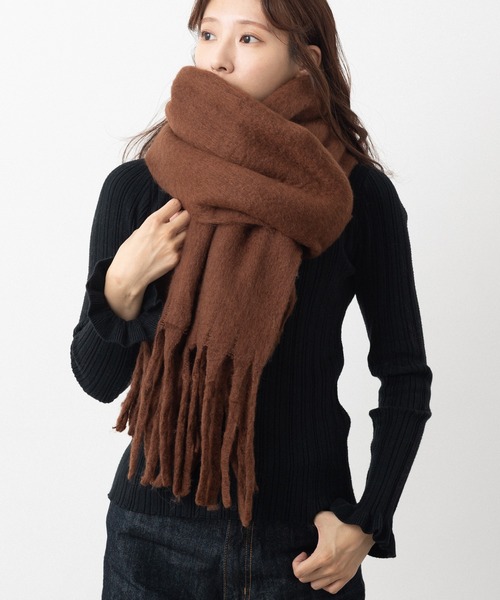 太いフリンジが特徴的な肌触りがふわふわの約36×220cmの大判マフラーボリュームのある生地感でとても暖かく、首元を寒さから守ってくれますいつものコーディネートの差し色として色違いで揃えたくなるアイテム。 秋冬のファッションに馴染むナチュラルで発色のよいカラーリングはコーディネートをワンランクおしゃれに彩ってくれます。マフラーやショール、ブランケットとしても役立ち、プレゼントにも喜ばれるアイテムです。重さ約280g素材ポリエステル100%*洗濯の注意 手洗いで軽く洗い流してください。*汗や水、摩耗により他の物に色移りする可能性がありますのでご注意ください。