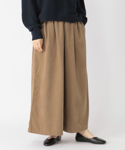 ーーー 上品な印象漂う細畝のコーデュロイ素材を使用した、イージーケアスカーチョが登場! 洗濯度のしわが発生しにくい素材を使用ているため、ご自宅でのケアがらくちん♪ 程よくフレアに広がったボリューム感で、スカート見え♪ ウエスト部分は総ゴム仕様のパンツなのでリラックスして着用いただけます。 長すぎない丈感で、年代、身長を問わずに合わせやすいシルエットに仕上げました。 コットンを使った素材感なのでふんわりと優しい肌触り。 秋から冬まで長く履いていただけるデイリー使いにおすすめのアイテムです。 ーーー スウェットやニットなどボリュームのあるトップスと合わせたり、シャツやブラウスをタックインしてすっきりと着たり、幅広いアイテムと相性のいい一枚◎