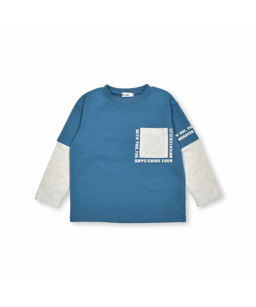 大きなポケットが目を惹く、男の子用長袖フェイクレイヤード・ビッグシルエットTシャツです。 ポケット周りと袖に入ったロゴもアクセント。 身生地は丈夫な生地感と柔らかい肌触りを兼ね備えた綿100%素材。 オーバーサイズのラフな着心地で、おしゃれなバイカラー配色が楽しめます。 お色は濃い緑青色のぺトロールブルー×杢オートミール(ブルー)と、杢グレー×スモーキーブルー(グレー)の2色です。 独特の雰囲気を持ったニュアンスカラーは、シャツやジャケットのインナーに合わせても抜群の存在感を発揮してくれます。 まるでTシャツを重ね着しているようなフェイクレイヤードTシャツは、程よい厚さの生地感でロングシーズン着用できる軽い着心地。 ゆとりのある身幅でシンプルなデザインなため、どんなボトムとも合わせやすいのがポイントです。 カラーパンツやデニムパンツに合わせると、肩落ちのデザインの絶妙なゆるさのシルエットでトレンドのコーデが完成! サイドライン入りジャガードパンツ(1769-57005)とのコーディネートがおススメです。 With you、the days shine even brighter あなたがいると、日々はさらに輝く 【Noeil aime BeBe(ノイユ エーム べべ)】 「Daily+」 デイリープラス Life・Relax・Basicをベースにトレンドをプラスしたリラックスカジュアルブランド。 自分たちの趣味や流行を大事にしながらも、 子供との時間を大切にしたいパパ・ママに向け子供服を提案します。
