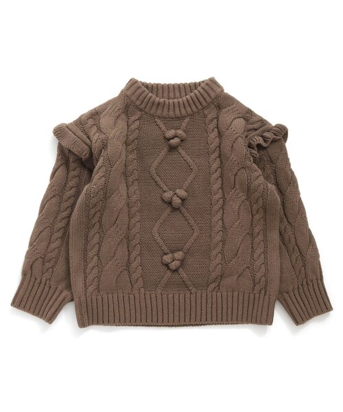 〈 洗濯機でお洗濯できるアイテム 〉 □Seraphのニット□ 優しいカラーでゆったりと余裕のあるシルエットが とっても可愛いニットアイテム♪ 肩部分にはフリル付き◎ パンツやスカートと合わせたり ワンピースの上に重ね着しても可愛いです!! 嬉しいウォッシャブルアイテムで お家の洗濯機でお洗濯いただけます◎ 【取り扱い表示】 40℃を上限に洗濯機で洗濯、デリケートアイテムモード、ネット使用、漂白剤禁止、色物は同系の色と一緒に、洗濯後直ちに取出し、タンブル乾燥不可、日陰で平干し、アイロン禁止、商業ドライクリーニング不可 【ご注意事項】 この商品は着用中の摩擦や洗濯により毛羽の乱れ、毛羽脱落、毛玉が生じることが有ります。できるだけ美しくご利用頂く為に次のことにご留意下さい。 ○毛玉は毛玉取り器またはハサミで丁寧にカットして下さい。 ○毛羽が他に付着した際はテープやブラシで除去して下さい。 ○他の製品とは洗わず、単独でお洗濯して下さい。 ○タンブル乾燥はお避け下さい。 素材の特性上、過度の力(引っかけや摩擦等)がかかることにより、ループが飛び出したり、ほつれることがあります。 出来るだけ美しくご利用頂くために次のことにご留意下さい。 ○ 過度の力がかからない様に着用、着脱には十分ご注意下さい。 ○ 押し洗いを推奨いたします。 ○ 形を整えてから干して下さい。 ※商品により多少の誤差が生じる事がございます。あらかじめご了承下さい。 ※ご使用のパソコンやブラウザの環境により、実際の色とは多少異なる場合がございます。 ※モデル着用写真についてはイメージの為、実際の商品とカラーや仕様が異なる場合がございますので、商品画像をご覧ください。 【 SERAPH -セラフ- 】 毎日に新鮮なアクセントが加えられるナチュラルなデイリーウェア。 ファッションの流れに敏感な、おしゃれなママとキッズのために、 クリーンで繊細なデザインとディテールをやわらかく温かみのある優しい素材で表現したブランド。 ボーダー、チェック、ストライプといったシンプルなテキスタイルにトレンド要素をプラス、 ナチュラルな色使いを大切にウェアから雑貨まで、 キッズのカジュアルで少し上品なコーディネートを提案します。