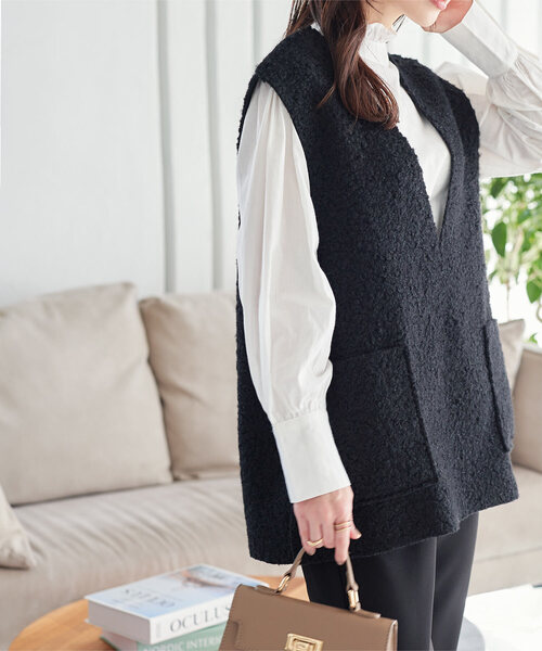 2wayの着こなしが楽しめる季節感たっぷりのリバーシブルベスト。トレンドのボアの生地感が目を引く1枚。シンプルベーシックなシルエットなのでさまざまなコーデにマッチしやすく、合わせるアイテムによって表面のデザインを選べるのが嬉しいポイントです。【素材・サイズ感】ふんわり軽い素材でレイヤードコーデもストレスフリー◎その日のコーデや気分で違った着用の仕方ができるのがリバーシブルの魅力。ポケットはボア面にのみ施されており、それぞれの面で違ったスタイリングをお楽しみいただけます。【STAFFコメント】秋冬のおしゃれをもっと楽しく、もっと自由に。そんな願いをかなえてくれるのが、このリバーシブルベストです。一つのベストで二つの異なるスタイルを楽しめる、まさに魔法のような一着。どんなシーンでも、どんな気分でも、あなたのスタイルに寄り添います。まず、ひとつめのスタイル。シンプルでクラシック、でも一味違う。もこもことした表情のボア面は、エレガントなムードを演出します。これが普段使いにぴったり。反対側はプレーンは素材で、ジーンズやカジュアルなパンツと組み合わせて、街を歩くときのおしゃれを引き立てます。リバーシブルならではの魅力。同じベストを裏返すと、新たなスタイルが広がります。さらに、リバーシブルベストはその着こなしの自由度においても際立っています。ノーカラーのデザインは、他のアウターやインナーとの相性抜群。スカーフやストール、ネックレスを加えることで、季節や場所に合わせたアクセントをプラスできます。一つのベストで、無限のスタイリングを楽しんでください。シンプルで洗練されたデザイン、そして驚くほどの着こなしの幅広さ。これがリバーシブルベストの魔法。季節や気分に合わせて、あなた自身の個性を輝かせてみてください。オシャレな冒険が待っています。このリバーシブルベストを手に入れれば、あなたのファッションコレクションに新たな次元を加えることでしょう。今日から、より自由で魅力的なスタイルを手に入れてください。《KOBE LETTUCE ー神戸レタスー》 プチプラレディースファッションからコスメまで、トレンドアイテムを豊富に取り揃えております。 毎シーズン発売されるインフルエンサーとのコラボ商品はSNSでも話題に。