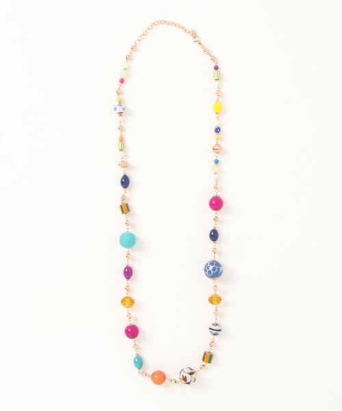 大小様々な形や柄のビーズを組み合わせた、遊び心のあるロングネックレス。コーデにプラスするだけでフォークロアな雰囲気に◎ ※こちらの商品は1点1点職人による手作りとなります。その為、形や色合い・模様など若干個体差がございます。(画像は一例です。)あらかじめご了承ください。 ※屋外での撮影画像は、光の当たり具合で色味・カラーが違って見える場合がございます。商品のカラーは、スタジオ撮影の画像をご参照ください。 Amina Collection Co.,LTD.