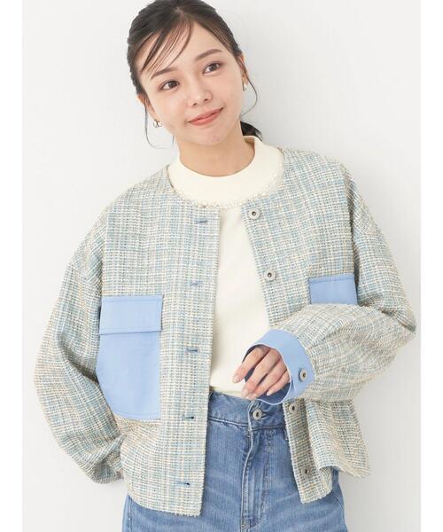 ラメを織り込んだ華やかなツイード生地で仕立てたジャケット。ノーカラーのデザインが首元をすっきりさせるのもポイント◎異素材を使用した胸ポケットもアクセントをプラスします。コーディネートに取り入れれば上品な着こなしを楽しめるアイテムです。透け感[無し]裏地[すべて有り]伸縮性[無し]光沢感[無し]生地の厚さ[普通]付属品[無し]ポケット[有り]前2つ※同素材の【1L33L0H0500 ツイードワンピース】とセットアップとしてご着用いただけます。※モデル着用画像は光の当たり具合で色味が違って見える場合がございます。商品の色味は物撮りの画像をご参照ください。● earth music&ecology ●(アースミュージック&エコロジー)人とライフスタイルと環境に寄り添い、エントリーアイテムとトレンドアイテムをMash upさせ、いつでも心地よく過ごせる、自由な大人の女性を表現します。▼ 商品のお気に入り登録がおすすめです ▼商品ページ内の「♡」ハートマークをクリック。完売時の再入荷や、最後の1点の通知、コーディネート画像がアップされたとき、お得なお値下げの際の通知を受ける事ができます。【お知らせ】ページでも通知が確認できます。