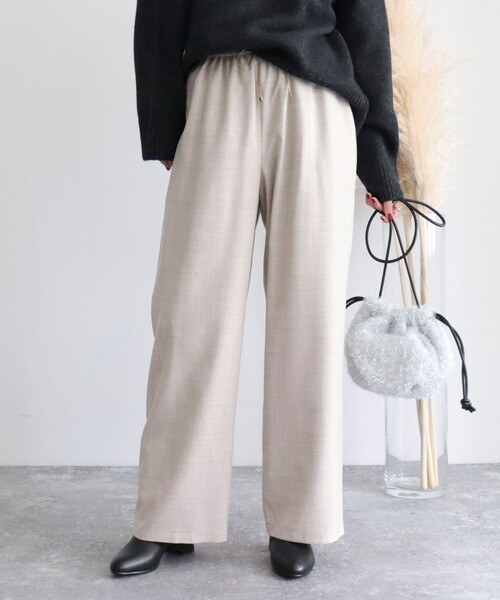 ◇fredy emue◇ 【2023 AW】 秋冬のきれいめカジュアルコーデに外せないワイドパンツ ●point ・きれい見えする素材感とカジュアルなワイドシルエットを兼ね備えたシンプルイージーパンツ ・ウール40%混の素材を使用しており、薄手で軽いながらあたたかな履き心地です ・レーヨン混でやや光沢感のある生地になっており、ジャケットやブラウスと合わせたきれいめなコーディネートとも相性抜群です ・ストンとおちるワイドシルエットとウエストゴム仕様で、きれい見えしつつも楽な履き心地を実現します ・各色裏地が付いているのでインナーの色も気にせずにお使いいただけます ・カジュアルからきれいめまで幅広いコーディネートを楽しめる万能アイテムです 透け感:なし 裏地:あり 伸縮性:なし 光沢感:若干あり 洗濯:水洗い可 ●お取扱い上のご注意● *商品を長くご愛用していただきたいため、アテンションタグがある場合は必ずご確認の上、着用又はお取り扱い下さい。 *店頭及び屋外での撮影画像は、光の当たり具合で色味が違って見える場合があります。商品の色味は、スタジオ撮影の画像をご参照下さい。 *商品画像に関しては出来る限り忠実に表示出来るよう努めておりますが、お客様がご利用のモニターの設定及び特性により、実際の商品と比較し色味に若干の誤差が生じる場合があります。 *画像の商品はサンプルとなりますので実際の商品と仕様、加工、サイズが若干異なる場合がございます。 *製品洗い加工の商品は、多少の歪み、シワなどが見られたり、風合いやサイズ等が1枚1枚異なります。汗や雨等で濡れた時や、摩擦により色落ちし、他の衣料を汚すことがありますので(特に濃色のもの)ご注意ください。 ◇商品のお気に入り登録◇ 【お気に入りに登録 ♡マークをクリック】を是非ご活用ください! 再入荷の通知や、ラスト1点の通知、セールの通知がいち早く届きます。 ◇ブランドのお気に入り登録◇ 新商品や再入荷など、いち早くブランドのお得情報が届きます。