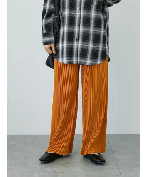 上品な光沢と起毛感のある別珍にプリーツ加工を施したパンツ。 細いピッチのプリーツが縦ラインを強調し、シルエットもすっきりと見せてくれます。 動きのあるデザインが女性らしい柔らかな雰囲気を演出。 ウエストゴム仕様で穿き心地も良く、デイリーユースにも活躍してくれるアイテムです。 【その他採寸】 F ウエスト:[ゴム仕様]64cm ※商品画像は、撮影環境やお客様のご利用のPC・スマートフォンのモニター環境などにより実物と色味に差異がある場合がございます。 ★《お気に入り登録》でお得な情報をGET★ ① 商品ページ内のハートマークをクリック! ② 以下通知が受け取れます! 「再入荷」「ラスト1点」「特別セール」etc.. \ブランド、ショップのお気に入りも是非!/