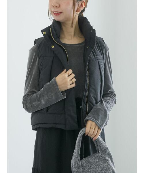 さらりとしたナイロン素材がカジュアルな雰囲気を演出するベスト。中綿入りなので、暖かさを守ってくれるのがポイントです。短めのクロップド丈がすっきりとした印象を与えるのもポイント◎デイリーユースやアウトドアシーンにも大活躍するアイテムです。※商品画像は、撮影環境やお客様のご利用のPC・スマートフォンのモニター環境などにより実物と色味に差異がある場合がございます。【その他採寸】F 着丈:[前]51cm[後]57cm