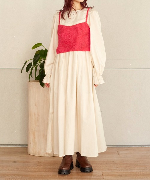 着回し抜群!!ニットキャミセットワンピ-ス ▼デザイン ・シンプルワンピースとニットキャミがセットになったお得なワンピース ・どちらも単品で使用できるので着回し抜群 ・これ1枚でおしゃれにその日のコーデが決まります ・アクセントカラーのニットキャミをあわせることで一気におしゃれに ・背中が開いているため、抜け感がでて軽やかな印象◎ ▼コーディネート ニットキャミはお手持ちのアイテムと組み合わせることでコーデの幅が広がるアイテム。ニットキャミはセットアイテムのワンピースと合わせるのはもちろん、ブラウスと合わせてアクセントアイテムとして合わせるのもおすすめです。 -------------------- 裏地:膝丈まであり 透け感:エクリュとベージュややあり 厚さ:薄め 伸縮性:なし 洗濯方法:手洗い可 -------------------- ※商品の色は着用写真ではなく、商品写真をご参照ください。また、可能な限り実物に近いカラーにて掲載しておりますが、ご使用のパソコンおよび携帯電話の閲覧環境によっては、実際の色味と異なって見える場合がございます。予めご了承ください。 ※商品サンプルにて撮影しております。若干の仕様変更が生じる場合がございます。 【お買いものにおすすめの便利機能!】 ★商品のお気に入り登録 完売カラーの再入荷の時や、ラスト1点の時、セールになった時にお知らせします。 ★ブランドのお気に入り登録 商品や再入荷、セール情報など、いち早くブランドのお得な情報を受け取ることができます。 ぜひご活用ください!
