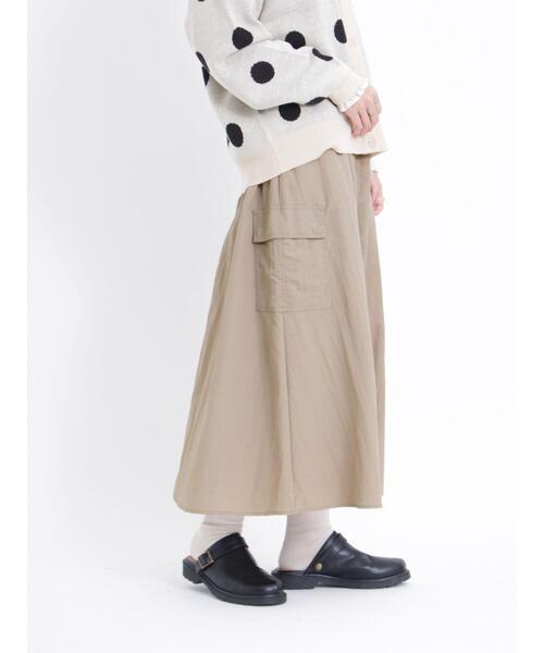 さらりとしたナイロン素材で仕立てられたスカート。 サイドには存在感のあるポケットを施し、カジュアルなムードを演出します。 ゴム仕様のウエストがリラックスした着こなしを実現◎ 休日のお出かけシーンに大活躍間違いなしのアイテムです。 ※商品画像は、撮影環境やお客様のご利用のPC・スマートフォンのモニター環境などにより実物と色味に差異がある場合がございます。 【その他採寸】 F ウエスト:[ゴム仕様]64cm