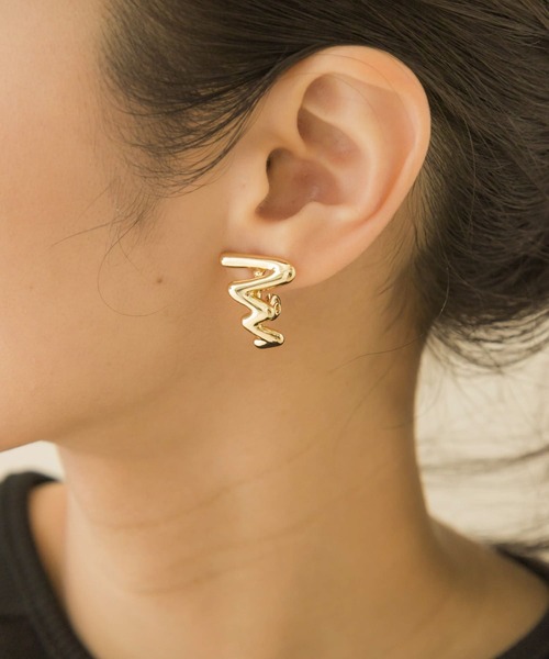 【メタルラインで仕立てたギザギザ】 イナヅマのようにギザギザとし他シルエットに仕立てたイヤリング。 艶のあるメタル素材が耳周りに軽やかさをプラスしてくれます。 アート感のあるデザインながら、肌なじみのあるゴールドカラーでコーディネートを選ばず取り入れやすいアイテムです。 ※メッキ製品は変色しやすいため、こまめにお手入れすることをおすすめいたします。アレルギー体質の方や体調が低下している方など、かぶれることがありますので十分にご注意ください。 ※アクセサリーは壊れやすいものです。取扱いにご注意ください。 ※その他お取り扱いに関しましては、商品に付属のアテンションタグをご覧ください。 ※商品画像は、光の当たり具合やパソコンなどの閲覧環境により、実際の色味と異なって見える場合がございます。予めご了承ください。 ※商品の色味の目安は、商品単体の画像をご参照ください。 ▼お気に入り登録のおすすめ▼ お気に入り登録商品は、マイページにて現在の価格情報や在庫状況の確認が可能です。 お買い物リストの管理に是非ご利用ください。