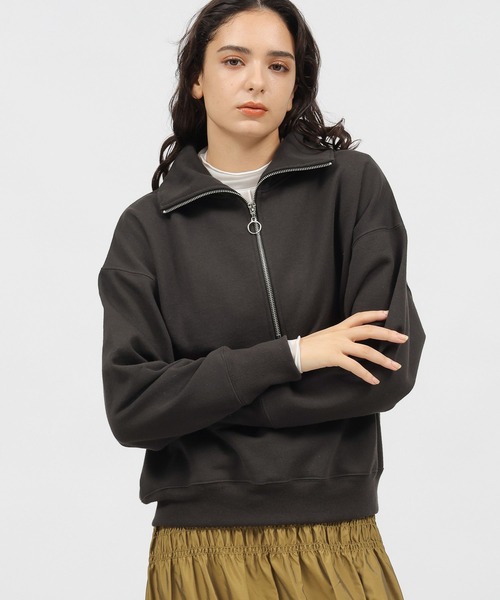 今期トレンドのハーフZIPプルオーバー。 カジュアルに着こなせるスウェット地に、広めの襟幅で今年らしいデザインの1枚。 ドロップショルダーで肩回りが稼働しやすく、身幅にゆとりもあるのでラフな着心地もポイントです。 【スタイリング】 ZIP使いで襟と立てたスタイリングも、インナーにタートルを合わせたスタイリングもおすすめです。