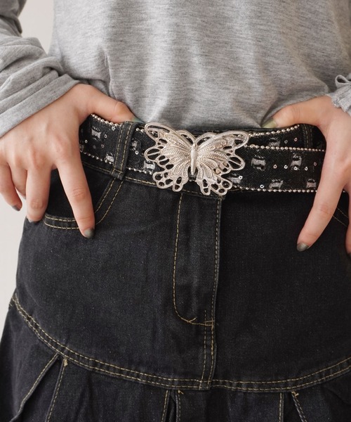 【 BARELY BLUE / ベアリーブルー 】 バタフライ バックル ベルト バタフライモチーフのバックルが目を引くアクセントベルト デニムをベースにダメージ加工やラメ、スパンコールをアクセントに加えたベルト。 全体を縁取ったボールチェーンが、コーディネートを引き締めます。 同色のデニムに合わせるのはもちろん、異素材アイテムとの相性も◎ いつものコーディネートにプラスワンするだけで、トレンドコーデが完成するおすすめアイテムです。 韓国ファッションやY2Kファッション、ストリートスタイルにも◎ ✔ベルト付き デニム タッグ ミニ スカート(品番:BBL-W-13G23-0015M)と合わせたコーディネートもおすすめ! #BARELY BLUE 淡いグレーのようなブルーのような、 絶妙に馴染んでくれるカラー、BARELY BLUEらしいアイテムをあなたに。 トレンドライクなバッグや洋服など、枠にとらわれないUNISEXブランド。 ※撮影・モニター環境等により実際の商品の色味と異なって見える場合がございます。 【インフォメーション】 ◆商品のお気に入り登録 完売カラーの再入荷通知を受け取ることができます。 ぜひご登録ください♪ ◆ブランドのお気に入り登録 新商品や再入荷などのお得情報を受け取ることができます。 ぜひご登録お願いします