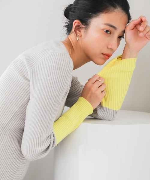 ■POINTこれからの季節にマストなインナー系ニット。ポイントは1枚で着てもコーデの主役に映え袖の配色がコーデのアクセントに!ベーシックなボディカラーに、袖のカラフルな配色が協調されてまさに今年のトレンドをおさえたニットプルオーバー。サイズ感はコンパクトな作りに、ネックの空きはゆとりを作る事で首回りの抜け感を演出して女性らしい優しい雰囲気もしっかり残してくれます。ベーシックなパンツスタイル合わせでも、袖の配色が上品な差し色を演出してくれるので大人な印象に見せてくれる。仕事着からオフの日まで幅広くお使い頂けます!■FABRICレーヨン混のしっとりもっちりの肌触り。中肉で程良い厚みで保温性も良くこれからの季節にヘビロテでお使い頂けます。リブ編みなので生地表面の立体感もあって、横にストレッチも聞いているのでサイズ感も気にせずご使用いただけます。…………………透け感:なし裏地:なし…………………★商品のお気に入り登録 登録すると、完売しても再入荷時に通知を受け取ることができます。 ほかにもお得な特典があるかもしれません♪ ★ブランドのお気に入り登録 新商品や再入荷などの情報を受け取ることができますので、是非ご登録ください♪