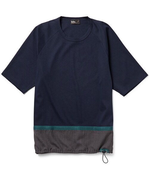 Japanese brand Kolor puts an off-kilter spin on everyday staples. This soft cotton T-shirt has a contrasting charcoal wool and mohair-blend hem with a band of teal grosgrain. The drawstring hem lends a sporty feel and allows you to personalise the fit. Wear it at the weekend with navy trousers and bright sneakers. Shown here with Kolor trousers and sneakers and a Le Gramme bracelet . Midnight-blue cotton T-shirt Teal grosgrain trim, charcoal drawstring waist 100% cotton; trim: 90% wool, 10% mohair; tape: 100% viscose Dry clean Made in Japan