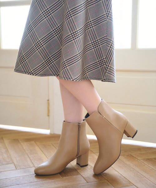 【Dress me up掲載】 コーディネートを選ばないシンプルなショートブーツ 【デザイン】 光沢感のあるフェイクレザーを使用したシンプルなショートブーツ。 サイドに配した小さなメタルパーツがポイント。 歩きやすい約6センチのヒールで、パンツ・スカート問わず合わせやすいアイテムです。 中敷きには低反発クッション、つま先には抗菌防臭素材を使用しています。 ※この製品は、抗菌防臭加工をしております。この効果は永久的ではありません。 ※掲載画像の色味について、撮影場所やイメージにより実際の商品と若干異なる場合がございます。ご了承ください。 店舗へのお問い合わせ商品番号:C59-27007 ●製品寸法: 01(22.5cm~23.0cm):ヒール高6cm 幅7cm ブーツ筒周り24cm ブーツ総丈19cm 02(23.5cm~24.0cm):ヒール高6cm 幅7cm ブーツ筒周り24cm ブーツ総丈19cm 03(24.0cm~24.5cm):ヒール高6cm 幅7.5cm ブーツ筒周り24cm ブーツ総丈19.5cm 備考:重量:03(24~24.5cm)片足約275g