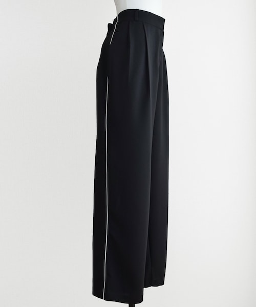 ◆アイテム詳細◆ スポーティーな印象のサイドラインデザインが特徴のボトムス! 細めのラインなのでカジュアルすぎずご着用頂けます。 縦ラインを強調しつつシンプルになりすぎない一癖デザインがポイントです スラックスなのできちんと感もありつつ、後ろベルトはゴム仕様でイージーな履き心地。 ───────────────────────────── 【COLOR】ブラック 【SIZE】Fサイズ