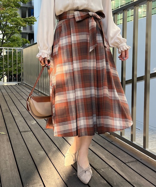秋冬らしい起毛素材で、あたたかみのあるコーディネートに。 ~POINT~ ・タックフレアーデザインの取り外し可能な共地ウエストリボン付きチェックスカート。 ・ウエストベルト巾なしでスッキリとしたウエストデザイン。 ・リボンを外すとよりスッキリ、きれいめな印象に。お仕事着にもおすすめ♪ ・今年らしいコーディネートなら、ロングブーツ合わせがおすすめです。 【ディティール・機能】 ・表起毛のトロンとしたタッチの先染めチェック生地を使用しています。 ※裏地あり 両サイポケットあり ※ポケット数:横×2 【スタッフコメント】 ・maki(163 ) 秋冬ムードを高めてくれる、起毛感のある素材とチェック柄♪ ウエストラインがとてもきれいで、自然と腰回りが華奢見えしてくれる気がします。 定番のミディ丈なので、ボリューム感のあるニットとも相性◎です。 モデル情報:身長162cm B80 W59 H85 着用サイズ:38(M) 店舗へのお問い合わせ商品番号:508-77029 ●製品寸法: 36(S):W62~64cm H129cm 総丈70cm 付属ヒモ全長177cm 付属ヒモ幅5cm 38(M):W65~67cm H132cm 総丈74cm 付属ヒモ全長180cm 付属ヒモ幅5cm 40(L):W68~70cm H135cm 総丈78cm 付属ヒモ全長183cm 付属ヒモ幅5cm 42(LL):W71~73cm H138cm 総丈80cm 付属ヒモ全長186cm 付属ヒモ幅5cm 備考: