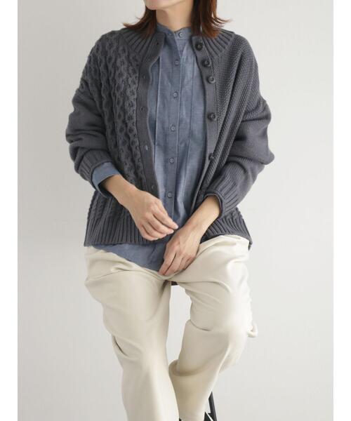 左右の身頃で編み柄が違う個性的なデザインのニットカーディガンです。 柄使いは個性的ですが、単色で編まれているので合わせていただきやすいカーディガンです。 太めの襟デザインも特徴です。 ※商品画像は、撮影環境やお客様のご利用のPC・スマートフォンのモニター環境などにより実物と色味に差異がある場合がございます。 ★《お気に入り登録》でお得な情報をGET★ ① 商品ページ内のハートマークをクリック! ② 以下通知が受け取れます! 「再入荷」「ラスト1点」「特別セール」etc.. \ブランド、ショップのお気に入りも是非!/