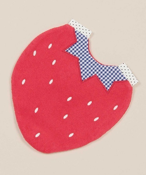 大きないちごがそのままデザインされた可愛らしいスタイです。インパクト大のルックスは、コーディネートのポイントに大活躍。表裏両面ともパイル素材を使用しており、吸水性もデザイン性も両方兼ね備えています。中に撥水布入りなので、大事なお洋服に水がしみこみにくいのも特徴です。首周りはスナップボタンで2段階に調節できます。