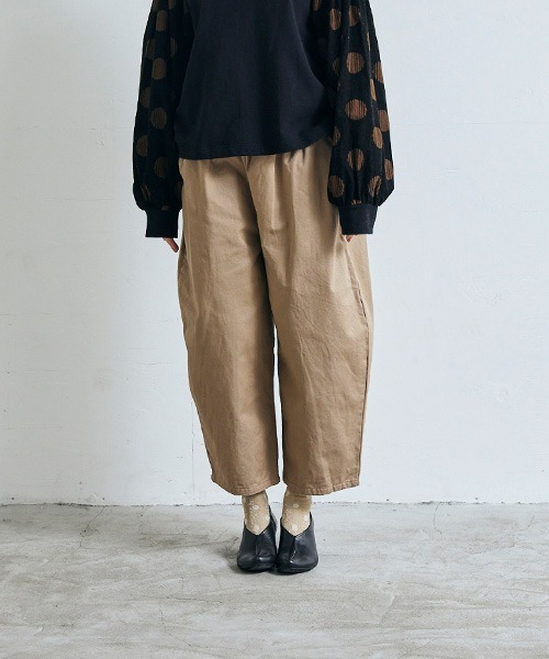 【NARU FACTORY】自らの価値基準を大切にする人へ上質なカジュアルファッションを提案しています。大阪の自社工場で1枚1枚丁寧に作っている日本のファクトリーブランドです。■デザイン/シルエット秋冬でもあたたかい裏起毛のパンツです。太もも周りはゆったりと、そして裾にかけて細くなるテーパードシルエットで、リラックス感がありながらすっきり見えな1着です。両サイドには便利なポケットがついています。■素材適度な厚みで高級感のあるカジュアルな風合いのカツラギ素材に、泉大津で長年毛布づくりを行ってきた瀧芳株式会社で起毛加工を行いました。素材の厚みに応じて最適な起毛機械を使い分け、きれいな起毛を行うために何十回と起毛とシャーリング加工を繰り返したこだわりのNARUオリジナル素材です。■コーディネート適度な厚みで高級感のある風合いのカツラギ素材の裏起毛パンツは、寒い冬でも心地よく大人のカジュアルスタイルを楽しんでいただけます。さし色のソックスやタイツをちらりとみせてもかわいいです。■モデル身長:164cm 着用サイズFREE-------------------------裏地:なし光沢感:なし透け感:なしポケット:あり伸縮性:なし生地の厚さ:中肉-------------------------■アテンション※この製品は縫製後、製品洗いをしています。その為に多少のゆがみ、シワ、生地のアタリが見られますが、これは製品の特長の一つです。また、加工により製品ごとに一点一点表情が異なります。以下の点をご留意の上、風合いをお楽しみください。■ご案内・商品のお気に入り登録→【カートに入れる】右側の♡をクリック完売カラーの再入荷通知や、ラスト1点の通知、セールの通知も受け取ることができます。・ブランドのお気に入り登録→ブランドタグのページから「お気に入りに追加」をクリック、新作商品や再入荷などブランドのお得な情報を受け取ることができます。※ご注文いただいた予約商品のお届け時期の確認は、注文履歴ページより行えます。※他のキャンペーンにより、期間中に価格が変動する場合がございます。※モデル撮影画像は、光の当たり具合で色味が違って見える場合があります。またご覧いただきますモニターや使用環境により実際の商品と多少色味が異なって表示される場合がございます。予めご了承をお願いいたします。