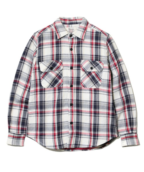☆ALCARZA☆ HEAVY FLANNEL CHECK WORK SHIRTS 肉厚で風合い豊かなインド産コットンを100%使用したヘビーネルチェックワークシャツが登場。 ざっくりと編み込まれ裏側が起毛した厚手のフランネル生地を使用したワークシャツ。 ビンテージ感漂うネコ目ボタンや、補強を兼ねた二重構造のエルボーパッチなどこだわりのディテールを施しています。 ウォッシュ加工が施されており、柔らかな着心地。 厚手なのでシャツジャケットとしても活躍してくれそうです。 カラーバリエーションも豊富で色違いで持っていればコーデの幅が格段に広がります。 シンプルながら随所にこだわりの詰まった1着となっております。 ※ご注意 ・チェック柄の入り方には個体差がございます。 ・生地にネップや多少の織りムラ等がございますが、不良品ではございません。