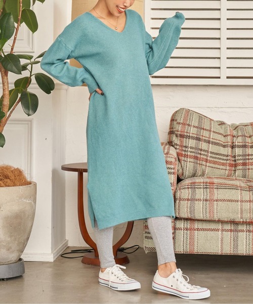 ゆったりとしたシルエットが魅力のニットワンピース。●厚すぎないニット生地のためロングシーズンお使いいただけます。●シンプルな無地デザインなので着回し力も抜群!●ゆったりとした抜け感のあるシルエットが女性らしい雰囲気を引き立てます。●ざっくり開いたVネックは、抜け感をプラスするだけでなくすっきり小顔効果も◎●サイドスリットが入っているので動きやすいデザインです。●1枚で着るだけでなく、レギンスやパンツを合わせたスタイルもおすすめ。※ストレッチあり※裏地なし※ニット素材のため、伸縮性があり記載しているサイズと若干異なる場合がございます。予めご了承ください。※商品のお取扱いに関しましては、商品に付属のアテンションカード、洗濯ネームをご覧ください。※モデル着用画像は光の当たり具合で色味が違って見える場合がございます。※商品の色味の目安は、色見本画像をご参照ください。【お買いものをお楽しみいただく為に!】▼商品のお気に入り登録完売カラーの再入荷通知や、ラスト1点の通知、セールの通知も受け取ることができます。▼ブランドのお気に入り登録新商品や再入荷など、いち早くブランドのお得な情報を受け取ることができます。