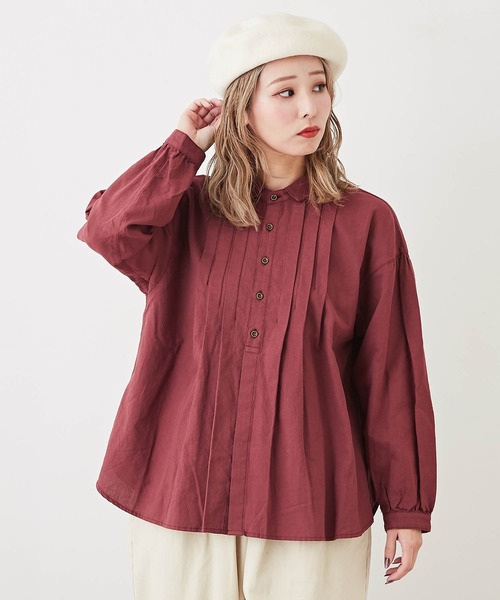 ■レトロな秋カラーで大人ナチュラルに。タックシャツ 小さく控えめなレギュラーカラーでカジュアルな雰囲気を残しつつ、女性らしい印象も与えてくれる無地シャツ。 フロントボタンは閉めると半分より下のボタンが隠れる比翼仕立てで、旬なハーフボタンのようなデザインに。 小さめのアンティーク調ボタンでさらに価値のある大人クラシックスタイルをお楽しみください。 ■エレガントフォルムの高見えブラウス 胸元の大胆なタックと袖にたっぷりと施したギャザーが、シルエットをレディライクに演出し、どこか上品なギャザーシャツに。 少し肩を落としたドロップショルダーは、リラクシーな印象を与えて自然と体に寄り添います。 おしりにかかるくらいのちょうどいいミドル丈のバランスが、どんなボトムスとも相性ばっちりです。 フロントボタンを閉めてメインはもちろん、トップスの上からサッと羽織るレイヤードスタイルなど幅広く着回しができます。 ■タフでしなやかな綿ポプリン 繊維が密に詰まったコットンポプリン独特の風合いで、軽量でありながら頑丈さも兼ね揃えている綿100%を使用。 高密度に織られているため耐久性に優れており、カジュアルになりすぎない上品さが人気の素材です。 着用するごとに自分仕様に育てる経年変化を楽しみながら、長く愛用していただければと思います。 ■透け感/なし ■伸縮性/なし ■張り感/なし ■裏地/なし 《お気に入り登録》でお得な情報を受け取れます! ・「商品のお気に入り登録」で再入荷通知や、セール通知を受け取ることができます。 ・「ブランドのお気に入り登録」で新商品や再入荷など、お得な情報を受け取ることができます。 ※モニター・環境等により実際の商品と多少色味が異なって表示される場合がございます。予めご了承をお願い致します。 【アイテムカテゴリ】 レギュラーカラーシャツ レギュラーシャツ 長袖シャツ 羽織り 【シルエット】 ルーズ 大きいサイズ ワイドシルエット ゆったり 大きめ 着心地 楽ちん 動きやすい ジャストサイズ Mサイズ ワンサイズ フリーサイズ マルチサイズ 幅広 体系カバー 二の腕カバー ミディアム丈 ミドル丈 襟付き 衿付き 長袖 長そで ロングスリーブ ボタン留め ボタン開き 前開き 前ボタン ギャザースリーブ 【生地・素材】 布帛 シャツ地 【カラー展開】 ナチュラル ボルドー ネイビー 白 ピンク 赤 紺 藍 ワインレッド 無地 単色 ワンカラー ワントーン くすみカラー スモーキーカラー 秋色 冬色 冬カラー アースカラー 【ファッションテイスト】 OL ウィメンズ コーディネート 可愛い かわいい かっこいい お洒落 おしゃれ 大人 個性的 トレンド 大人カジュアル アメカジ アメカジファッション 出かけ着 普段着 デイリー 着痩せ 着回し ペアルック デート お出かけ タウンユース デイリーユース アメカジブランド アウトドアスタイル アウトドアファッション レトロ ワークウェア 大人ナチュラル ストリートファッション ストリート系 メンズライク ボーイッシュ ガーリー キレカジ きれいめカジュアル ワンマイルウェア 休日コーデ ストレスフリー フレンチカジュアル レイヤードコーデ 重ね着スタイル カレッジスタイル 【シーズン】 春 秋 冬 3シーズン スリーシーズン 春服 春コーデ 秋服 秋コーデ 冬服 冬コーデ 秋冬