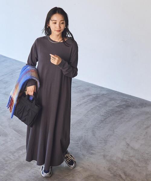 この秋冬に大活躍が見込める主役級ワンピ ■デザイン リラックス感をもたせつつも細見えするシルエットのが魅力のワンピース。 スッキリとした身頃とふんわりフレアなスカートが女性らしい印象に。 シンプルなアイテムなのでシルエットにこだわったアイテムです。 ■素材 スラブによる表面感のある天竺素材を使用。 お取り扱いもし易い一枚です。 ■スタイリング 1枚でもコーデが完成する楽ちんワンピースは、デニムパンツと合わせたりインナーにタートルをもってくるのも◎。 気温に合わせてニットやカーディガンやデニムジャケットなど合わせ次第でロングシーズン着用して頂けます。 ジャケットなどと合わせると綺麗見えし、様々なシーンで活躍してくれます。 透け感:なし 生地の厚さ:普通 光沢感:なし 裏地:なし サイドポケット:あり 家庭洗濯:手洗い可能 【注意点】 ※撮影商品はサンプルの為、実際の仕様と異なる場合がございます。 ※画像の商品は光の照射や角度、お使いのモニター環境により、実物と色味が異なる場合がございます。スタジオ物撮りの画像が実物の色味に一番近くなっております。 ※予約商品の場合、お届け予定はあくまでも目安となります。 生産の都合上、お届け時期が前後したり実店舗入荷時期とずれる場合がございますので、あらかじめご了承ください。 品名:CVC天竺 フレアワンピース 品番:7675-635-0290