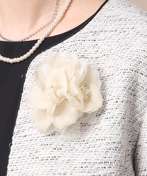 【デザイン】 2種類3個の小さなお花を集めた立体的でゴージャスなコサージュ。 特別な日の胸元を上品に彩ってくれます。 2つのお花のセンタ―にはラインストーンを添えたキラキラとしたフェイスが気品を漂わせます。 単色スーツもワンピースもこれ一つでぐっと華やかに昇格する優秀アイテムです。 安全ピンとピンクリップ付きなので、アップした髪の毛につけるヘッドアクセとしてやバッグなどへの装飾も可能です。 【機能】 安全ピン、クリップ #セレモニー#ママスーツ#入卒#卒園式#卒業式#入学式#入園式#学校訪問服#パーティドレス#フォーマルレディス#結婚式#七五三#ママ#母スーツ ※照明の関係により、実際よりも色味が違って見える場合があります。また、パソコン・スマートフォンなどの環境により、若干製品と画像のカラーが異なる場合もございます。 店舗へのお問い合わせ商品番号:C70-81009 ●製品寸法: 00:H9cm W9cm 備考: